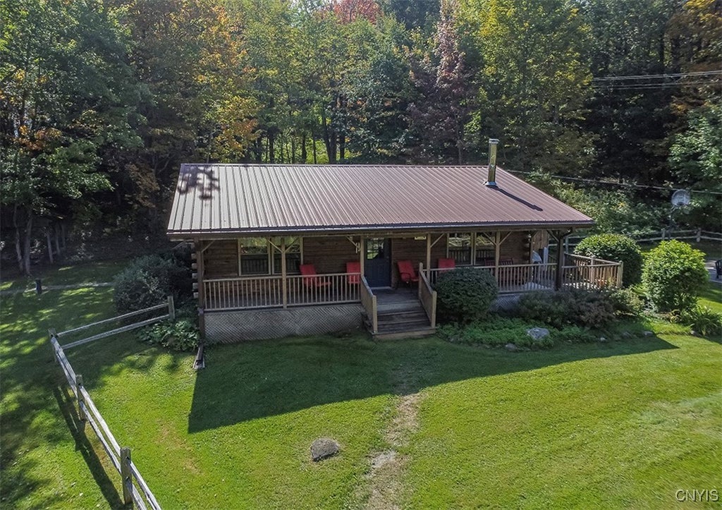 Welcome to your dream retreat! Nestled on almost 5 acres, this stunning log cabin blends rustic charm with modern updates. From the moment you arrive, the full-length front porch sets the stage for relaxation—perfect for rocking chairs, morning coffee, or swinging under the trees while the hammock sways in the yard. Step inside to find a warm, inviting interior filled with character. The front living room features a classic wood-burning stove, while the great room showcases soaring log beams and a pellet stove that adds cozy charm and efficient warmth, making it the heart of the home. The kitchen has been beautifully updated with gorgeous countertops, and modern finishes. This spacious cabin offers 3 bedrooms and 2 full baths, providing comfort for family and guests alike. Outside, you’ll discover spaces designed for both relaxation and recreation: a covered porch with a Jacuzzi on one side of the home, a large deck on another, and a basketball court ready for friendly games. For those who need extra space, the property also features a three-car garage (one of the bays used to be an office) and a barn, perfect for hobbies, storage, or small livestock. Whether you’re looking for a weekend retreat or a forever home, this property offers peace, privacy, and timeless beauty in every corner.