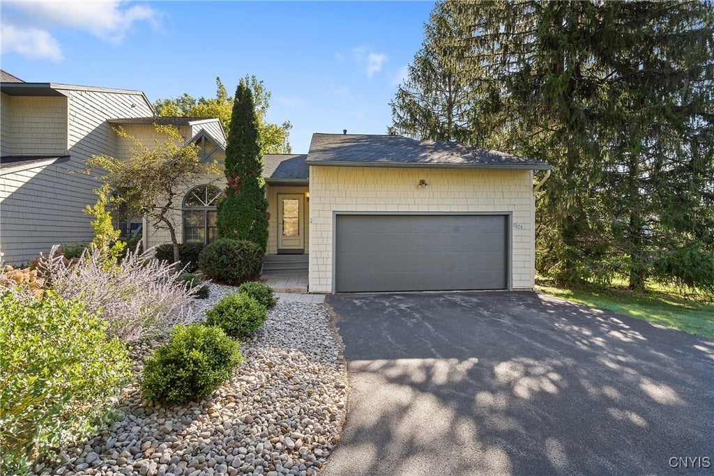 Warm and welcoming 3 bedroom, 2.5 bath end-unit townhome with open layout in desirable Manlius location. The foyer opens to a dining/living room with cathedral ceilings, hardwood floors, and a wood-burning fireplace. Sliding glass doors lead to a newly painted deck overlooking a private peaceful backyard perfect for grilling, entertaining or just relaxing! The eat-in kitchen offers plenty of space for everyday meals. the large primary suite includes its own bath. The walk-out lower level features a family room with wood-burning fireplace, sliding doors to the deck, an additional bedroom, which makes for a possible in-law suite, full laundry, and storage. Worry free living with HOA and services included. Square footage includes walkout lower level