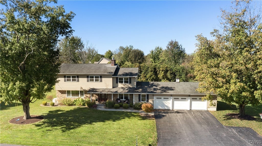 Absolutely immaculate and updated Colonial featuring 5 bedrooms, 3 full bathrooms, a potential 1st floor in-law/guest suite, a finished lower level and a 3 car attached garage. Fully remodeled down to the studs in 2016 with new siding & windows, the home has further been improved with a brand new boiler & hot water heater this year. This fabulous home offers: an open kitchen-family room with an expansive island & an abundance of cabinetry including a built-in beverage refrigerator, a primary suite w/an en-suite bathroom and walk-in closet, a formal dining room with gas fireplace, a large office with built-in desk areas, a 1st floor laundry, and a large mudroom. Additional highlights include: central-air-conditioning, a full house generator, sparkling harwoods throughout, and public water. The backyard boasts a 20' x 40' pool with new liner & heater. This is truly move-in-ready - just bring your furniture and enjoy!