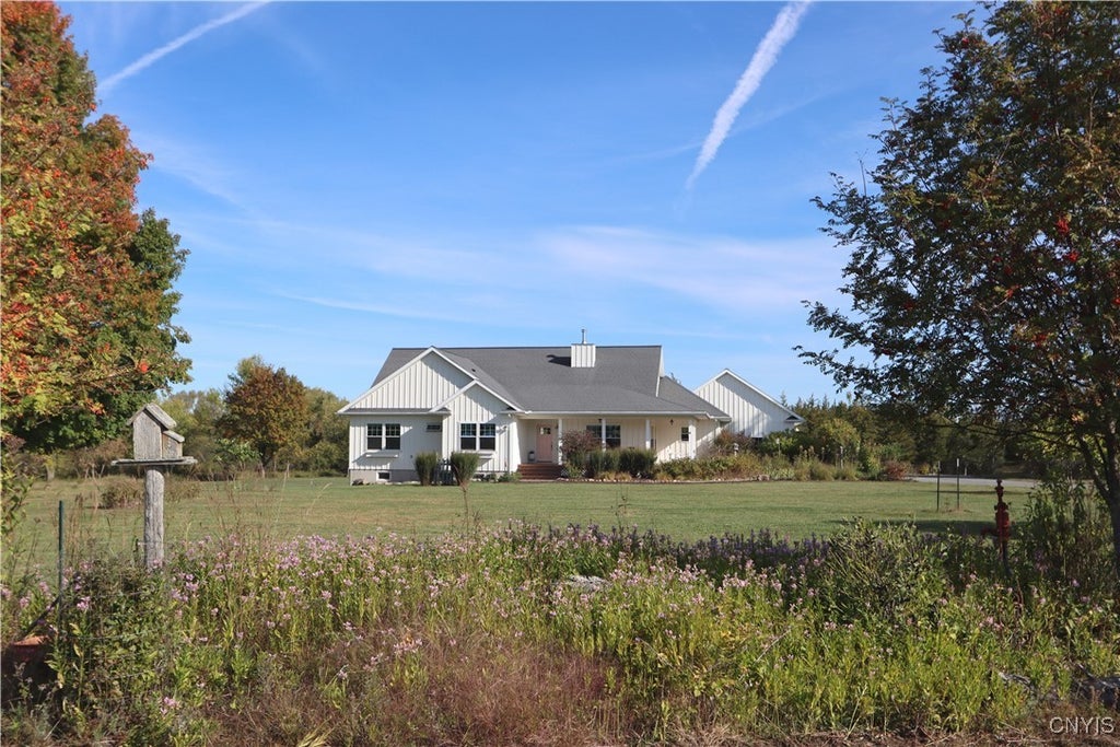 Set on picturesque Ridge Road in the rolling countryside of historic Sackets Harbor. This luxury 2012 Ranch home offers over 45 private acres of scenic land to roam! Located minutes from Wescott's Beach State Park on Lake Ontario , shopping, hospital and Historic Sackets Harbor. A short drive to Fort Drum . Paved circle driveway winds through landscaped acres until you reach this beautiful home built by Steve Hall. Wrap around open porch is the perfect spot to enjoy the flowers and private setting. This 3 bedroom, 3 1/2 bath home is inviting and offers a mostly finished walk out Superior wall basement . Open kitchen with a formal dining room and spacious living room features a large island perfect for entertaining! The great room opens to a covered porch area and fenced yard with beautiful flower gardens! Formal dining room provides ample room for holiday gatherings! A primary bedroom has a vaulted pine ceiling and private suite with soaker tub, walk-in tile shower with white subway tile and double vanity. The bathroom, mudroom and laundry room all feature luxury vinyl flooring. The remainder of the first floor is finished with bamboo flooring. Efficiency on the cold winter days with a boiler system that heats the basement and garage with in-floor radiant heat. A second heat source is the FWA furnace with central air! A wood stove will keep you toasty warm on the coldest winter days! Never worry about a power outage as this home has a whole house generator and a 1000 gallon buried propane tank is owned by the seller. Three car attached, heated garage with additional attic space above the garage. Plus a beautiful detached barn offers ample storage! Public water, private septic and located in Sackets Harbor School! Quality home shows pride of ownership and love. Endless hours have gone into clearing the land and planting trees and mature perennial flower beds.